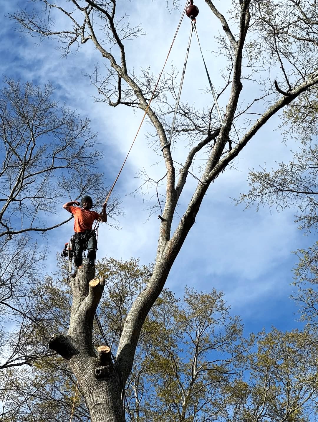 At Fall Line Tree Service, we take pride in tackling the toughest tree removal jobs, and when we say "a hundred feet up is just another day in the office," we mean it. Our team of expert climbers is trained to safely and efficiently remove trees, no matter how tall, tricky, or dangerous. Whether it's a towering tree that needs to be carefully taken down or a challenging removal in tight spaces, we handle it with precision. Working in steep, hard-to-reach areas like lakefront cabins and homes on inclines is something we do with ease, ensuring minimal disruption to your property and the surrounding environment. We specialize in removing trees from locations where ground equipment can’t reach, and our experienced climbers have the skills to perform these tasks with safety and efficiency. If you're dealing with a tricky tree situation and need a reliable, professional team to get the job done, Fall Line Tree Service is here to help. A hundred feet up? It's just another day for us.